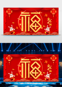 喜庆红色立体福字新年春节兔年春晚舞台背景