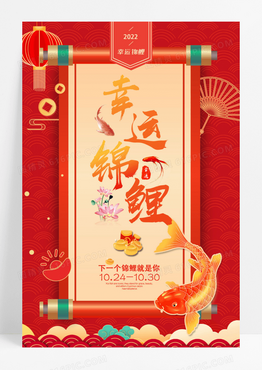 红金色中国风新年元宝附带锦鲤灯笼装饰