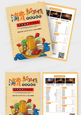 金色卡通风消费新升级实惠带给您饭店美食宣传单