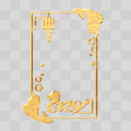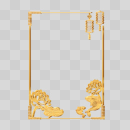 荷叶锦鲤灯笼边框金色立体设计免抠素材