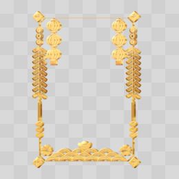 松树鞭炮边框金色立体设计免抠元素