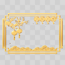 立体金色创意古风灯笼边框元素