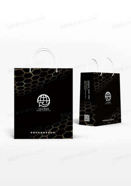 黑色大气简约金色渐变六边形手提袋设计
