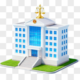 3D卡通屋顶立着金色天平雕像检察院大楼免抠元素