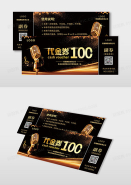 大气黑金炫酷风格麦克风KTV代金券ktv代金券