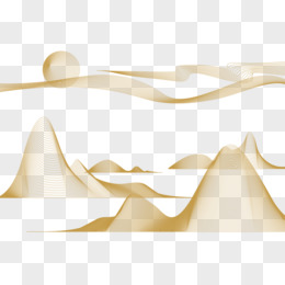金色国风线条远山免抠装饰矢量元素