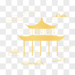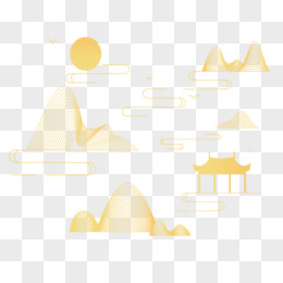 矢量金色线条山水免抠元素