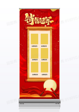 红色背景金箔大鼓卷轴风格英雄榜销冠x展架易拉宝