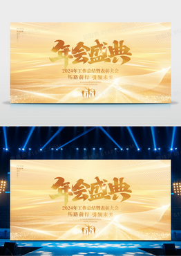 金色大气2024龙年企业年会舞台背景展板2024年会