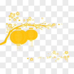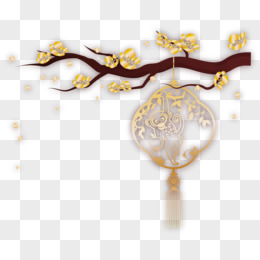 金色立体灯笼树枝剪纸装饰免抠元素设计