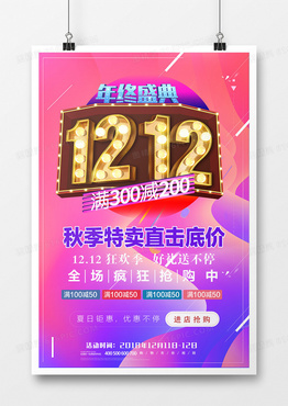 金色炫酷1212双十二优惠促销打折海报