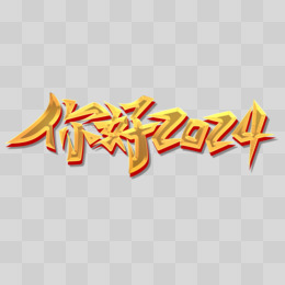 2024手绘龙年红色剪纸年份艺术字金色立体设计