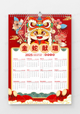 红色喜庆2025蛇年金蛇献瑞蛇年新年挂历蛇年日历蛇年挂历宣传海报