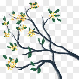 手绘桂花树枝免抠元素