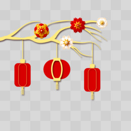 手绘红金浮雕花枝灯笼免抠元素
