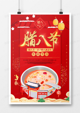 红色中国风传统腊八节海报
