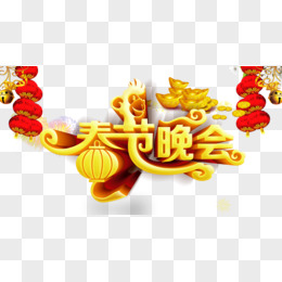 创意毛笔立体新春联欢会免抠矢量艺术字