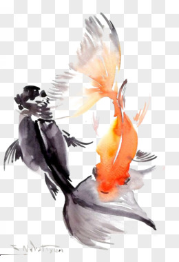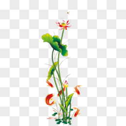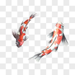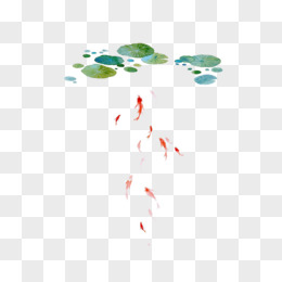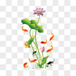 手绘池塘锦鲤和荷花夏季国潮微景观素材