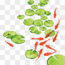 手绘荷花荷叶锦鲤荷花池插画元素