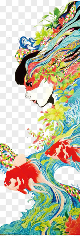 漂亮手绘金鱼风筝卡通风筝元素设计