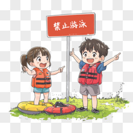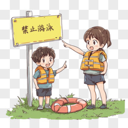 插画一群小朋友在河边栏杆外面玩耍免抠元素