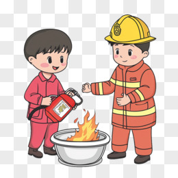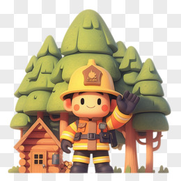 插画消防员用水枪扑灭大树前木堆的火免抠元素