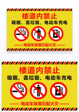 黄色醒目警示牌楼道内禁止系列禁止吸烟禁止丢垃圾禁止充电