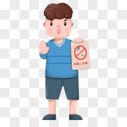 卡通手绘男孩举牌拒绝二手烟免抠元素