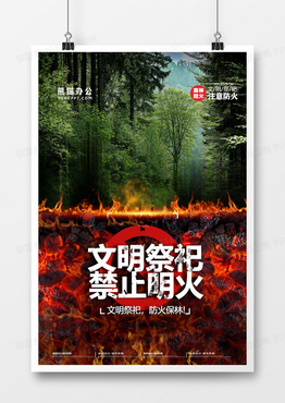 剪影禁止标志旁一个男孩拿着火苗靠近大树下的木堆免抠元素
