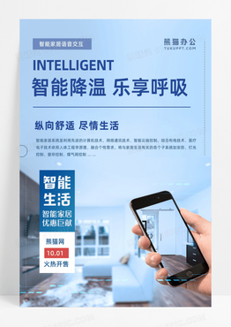 几何卡通智能家居智能降温乐享呼吸活动海报