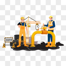 卡通手绘石油工人用矿工机器开采石油元素