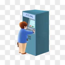 卡通手绘男子ATM机器上取款素材