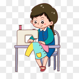 手绘卡通裁缝做衣服免抠元素