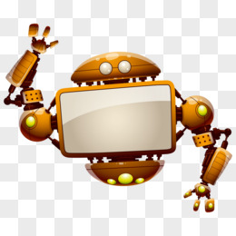 平面插画一个白色机器人拿着屏幕站在屏幕前讲课下面坐着一排人免抠元素