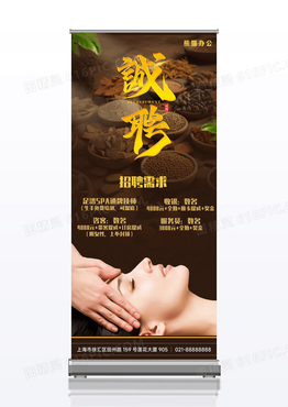 大气诚聘足浴SPA技师宣传活动展架易拉宝足浴招聘