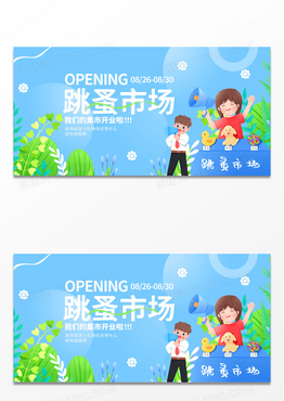 蓝色插画跳蚤市场宣传促销展板
