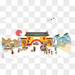 手绘新年逛集市场景元素