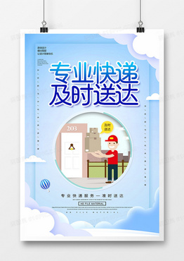 卡通创意专业快递及时送达海报