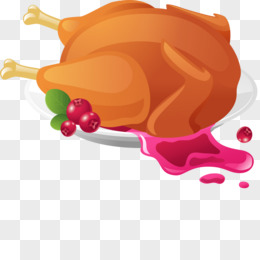 感恩节之手绘卡通女孩端着美味的烤火鸡