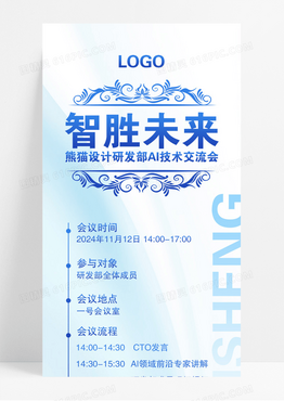 浅蓝色清新智胜未来研发部AI技术交流会邀请函长图宣传