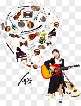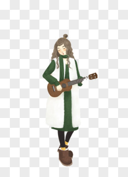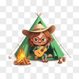 3D立体风格春天户外草坪上帐篷前弹吉他的女孩免抠元素