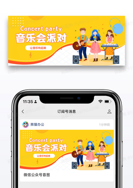 音乐会派对让音乐响起来彩色卡通公众号首图