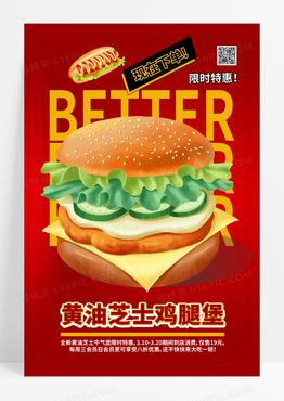 红色简约大气黄油芝士鸡腿堡海报设计汉堡菜单