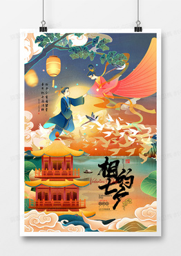 国潮风插画七月七相约七夕节海报设计