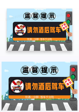 创意卡通风格请勿酒后驾车温馨提示卡设计