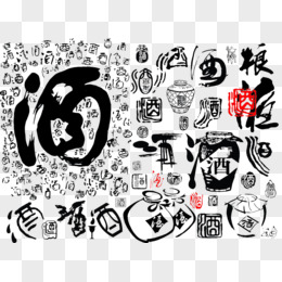 酒元素多种印章毛笔字