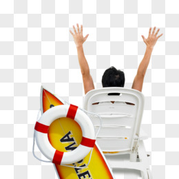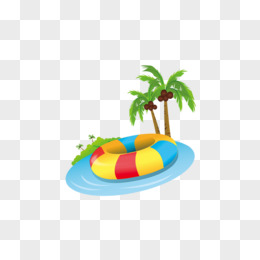 卡通手绘女孩带着火烈鸟游泳圈免抠素材