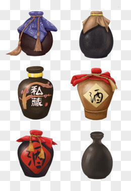 手绘酒坛免抠元素
