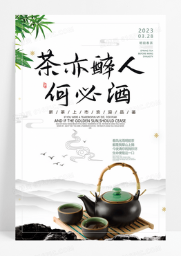 灰色水墨茶亦醉人何必酒茶叶宣传海报春季春天春茶