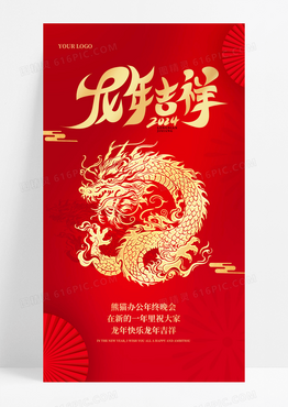 红色剪纸龙年吉祥2024龙年新年手机宣传海报